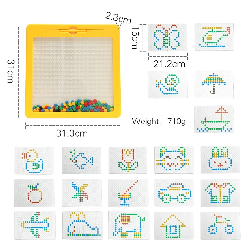 🧲 Magnetic puzzle board: Move colorful balls to create cute animal designs.