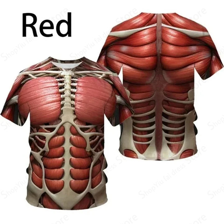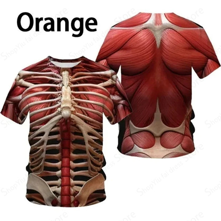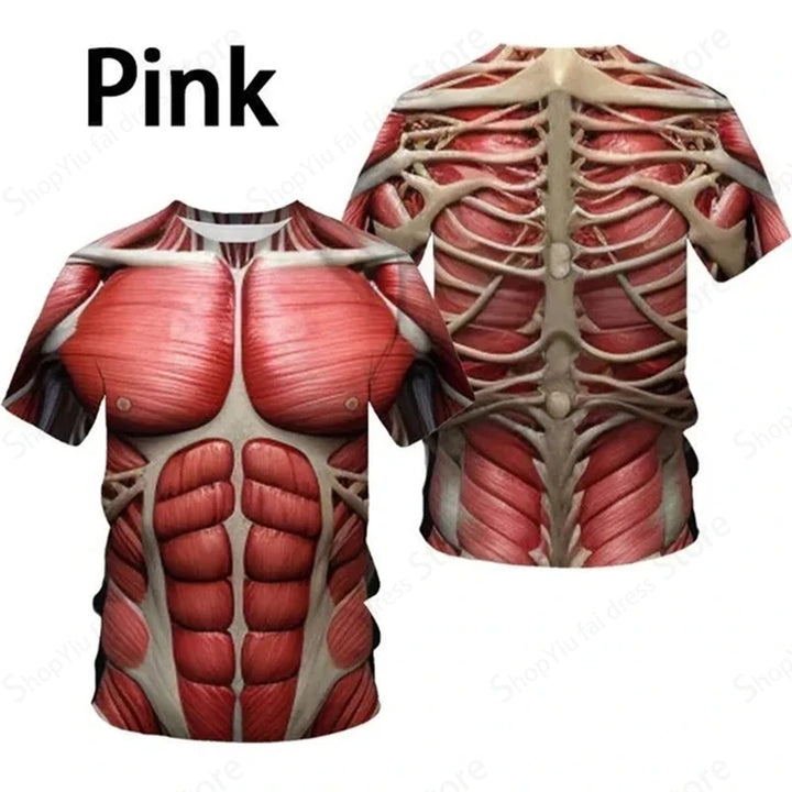 3D Muscle Print T-Shirt β Funny Skeleton Graphic Tee for Men & Women