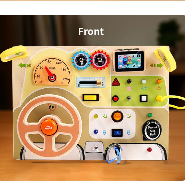Montessori Wooden Steering Wheel Toy – Interactive Busy Board for Kids